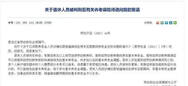 最后一种情形就是不管是退休前还是退休后被判处有期徒刑刑期较长的,这种情况是不好确定的,因为国家的法律法规是不会一层不变的,会根据社会发展情况,不断更新,对于较长时间以后的相关政策是没办法预测的。